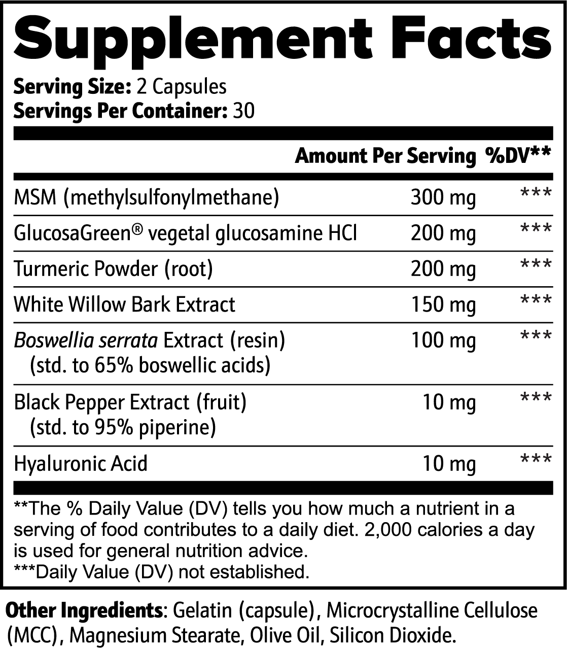 Keep your joints healthy and mobile with our comprehensive joint support formula. Combining glucosamine, chondroitin, and MSM with powerful anti-inflammatory ingredients for optimal joint health and comfort.